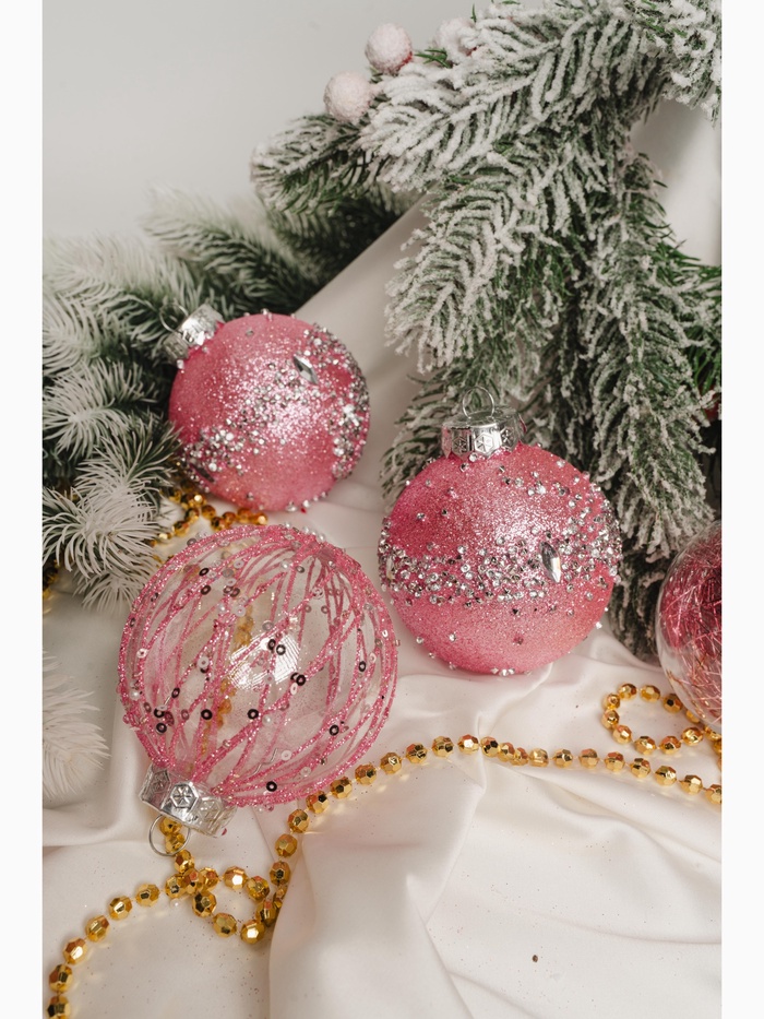 Эти шары подходят тем, кто хочет добавить ёлке не только цвет, но и эмоциональную окраску. Комбинация розового и прозрачного создает эффект света и воздуха, делая каждую игрушку похожей на каплю зимнего волшебства. Такие украшения легко комбинировать между собой и с другими оттенками, создавая мягкий и гармоничный образ праздника. Пластик обеспечивает долговечность — они останутся яркими и целыми на многие годы.