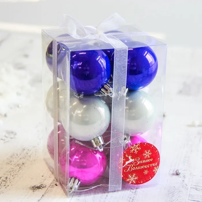 Ёлочные игрушки «Жемчужный глянец», шары новогодние, d=5 см, набор 12 шт., МИКС — Характеристики