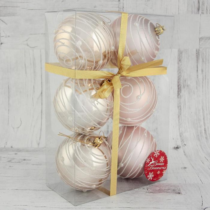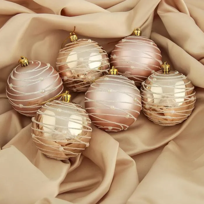 Ёлочные игрушки «Жемчужный орион», шары новогодние, d=8 см, набор 6 шт., розовый/золотистый — Характеристики