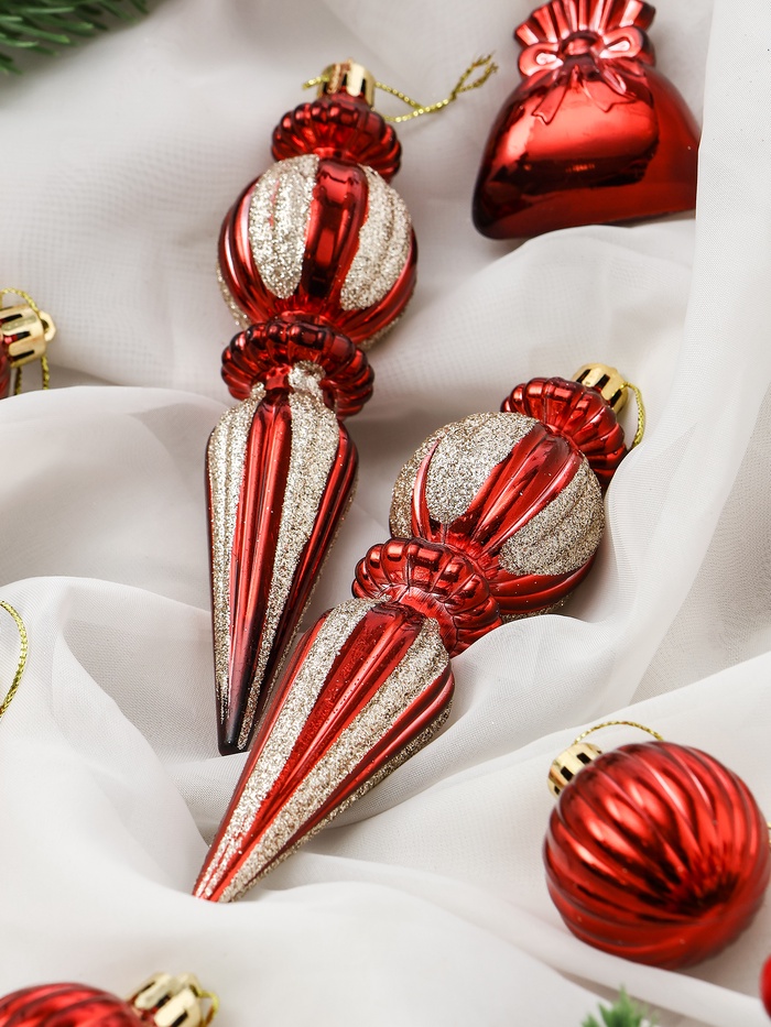 Эти украшения оживят ёлку и интерьер, подчёркивая атмосферу зимних праздников. Их насыщенный цвет и разнообразие форм делают декор выразительным и запоминающимся.
