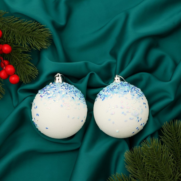 Ёлочные игрушки «Зимнее сияние», шары новогодние, d=8 см, набор 2 шт., бело-голубой — Характеристики