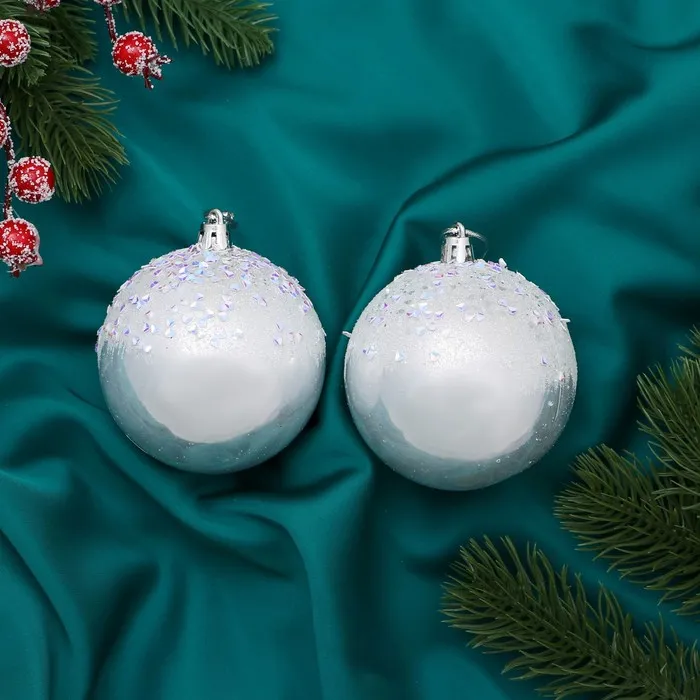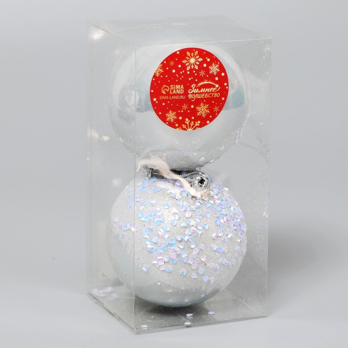 Ёлочные игрушки «Зимнее сияние», шары новогодние, d=8 см, набор 2 шт., серебро — Характеристики