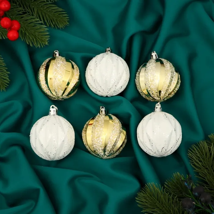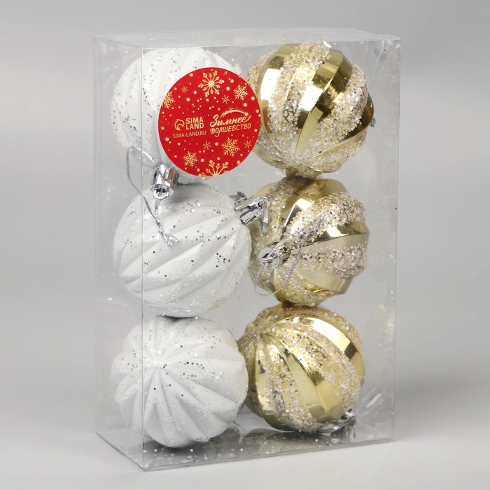 Ёлочные игрушки «Зимнее сияние», шары новогодние, набор 6 шт., d=5.5 см, белый/золотистый — Характеристики