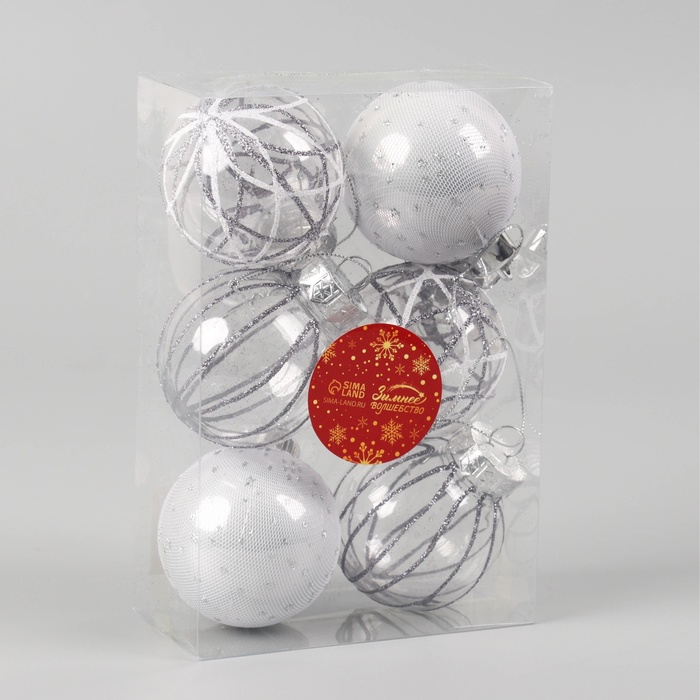 Ёлочные игрушки «Зимняя долина», шары новогодние, d=6 см, набор 6 шт., серебро — Характеристики