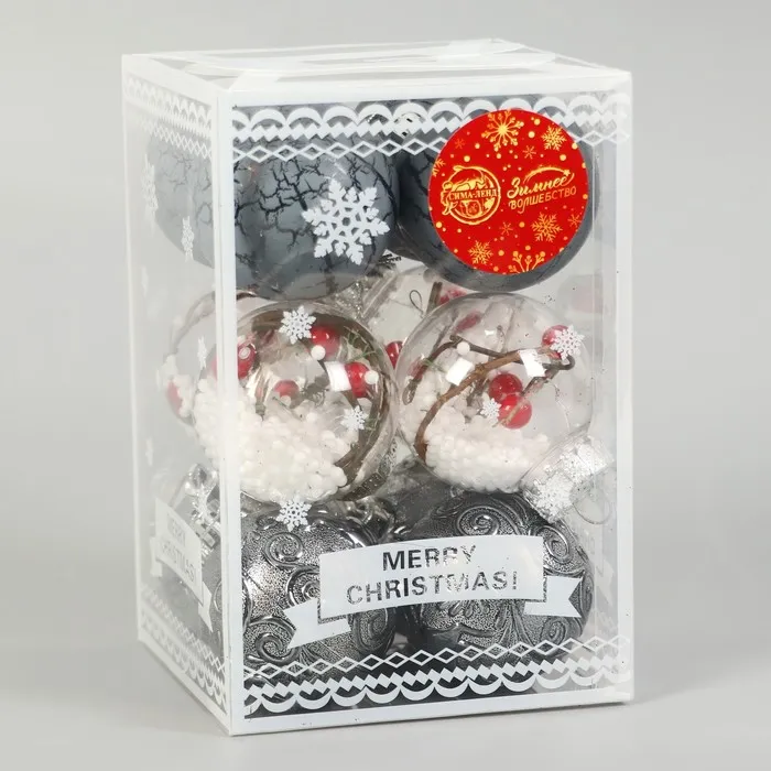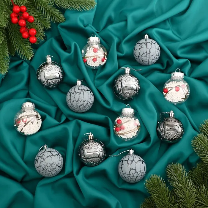 Ёлочные игрушки «Зимняя музыка», шары новогодние, d=6 см, набор 12 шт., ягодки, серый — Характеристики