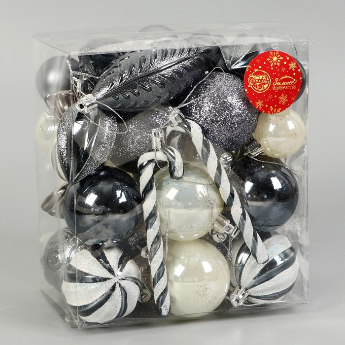 Ёлочные игрушки «Зимняя радость», шары новогодние, набор 40 шт., серебристо-белый — Характеристики