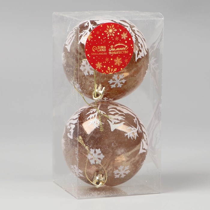 Ёлочные игрушки «Зимняя сказка», лес, шары новогодние, d=8 см, набор 2 шт., бело-коричневый — Характеристики