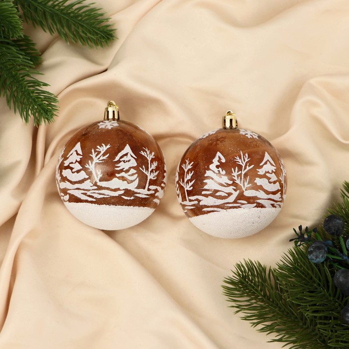 Ёлочные игрушки «Зимняя сказка», лес, шары новогодние, d=8 см, набор 2 шт., бело-коричневый — Характеристики