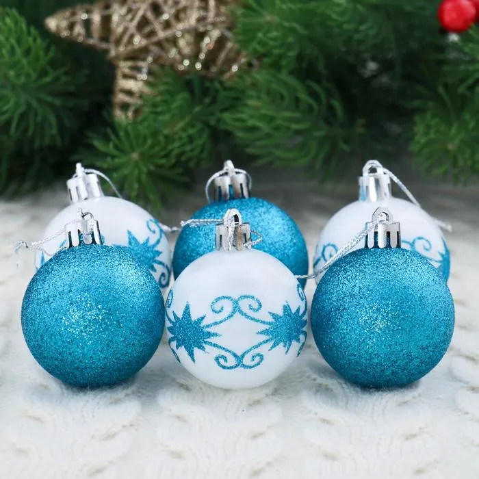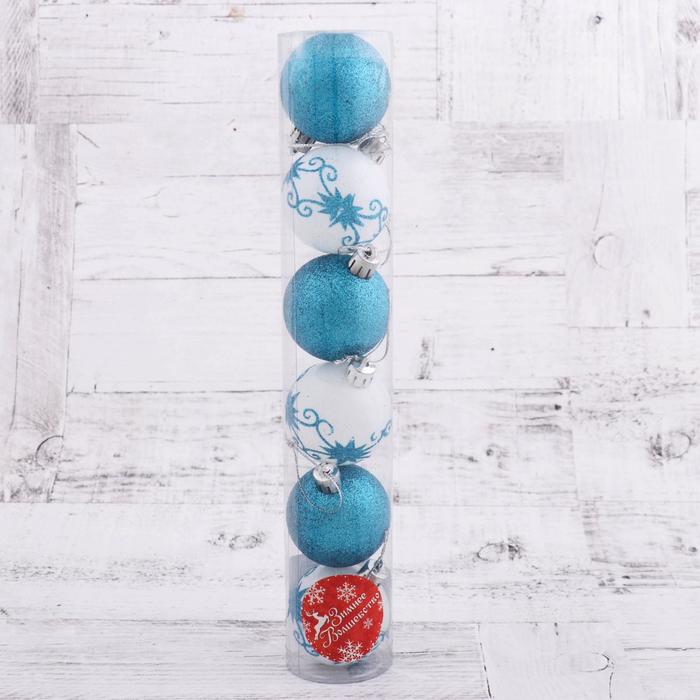 Ёлочные игрушки «Зимняя сказка», шары новогодние, d=5 см, набор 6 шт., бело-голубой — Характеристики