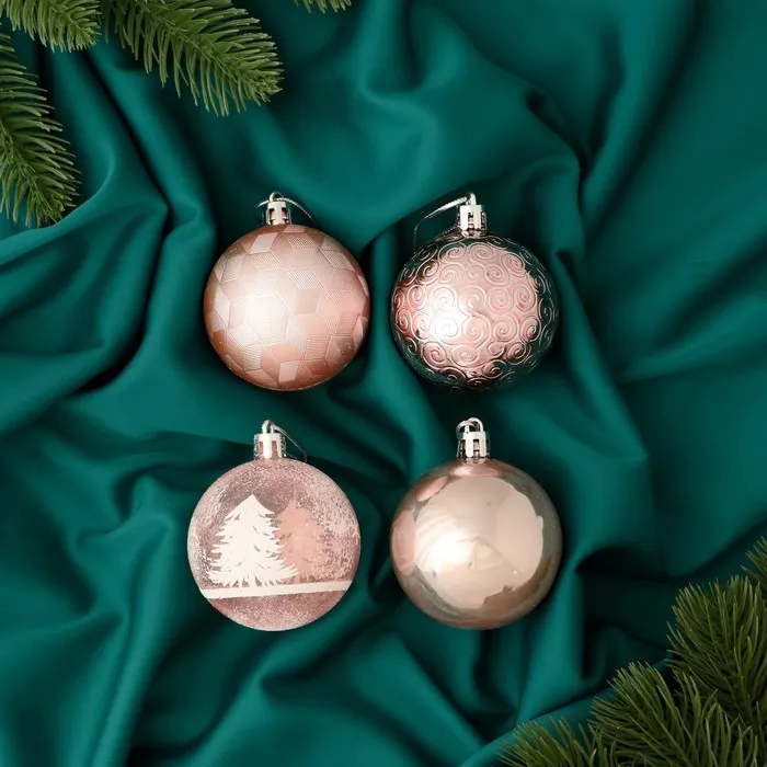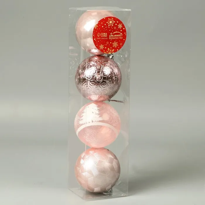 Ёлочные игрушки «Зимняя сказка», шары новогодние, d=5.5 см, набор 4 шт., завитки, розовый — Характеристики