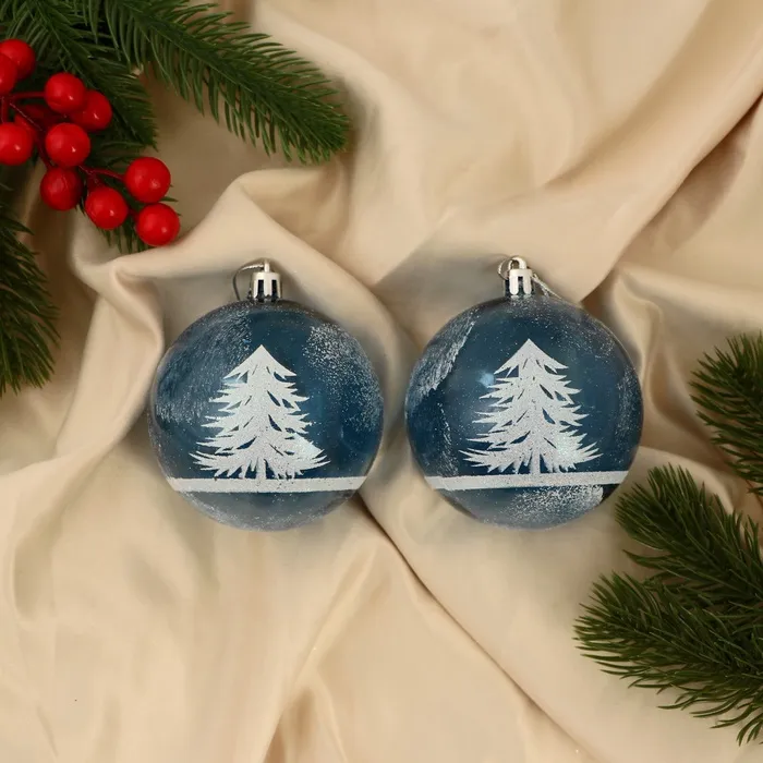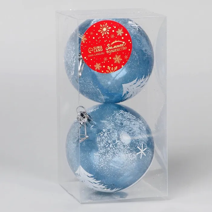Ёлочные игрушки «Зимняя сказка», шары новогодние, d=8 см, набор 2 шт., бело-голубой — Характеристики