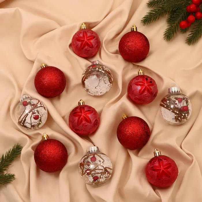 Эти шары создают образ Нового года, где важны не количество деталей, а точность и свет. Красный цвет и чёткие линии добавляют дереву доброго настроения и порядка. Используйте их как основу или как часть уже готового декора — они одинаково хорошо работают в разных интерьерах и стилистических направлениях, передавая атмосферу зимнего торжества.
