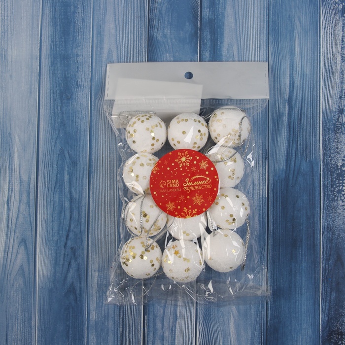 Ёлочные игрушки «Золотые вкрапления», шары новогодние, пенопласт, d=3 см, набор 12 шт. — Характеристики