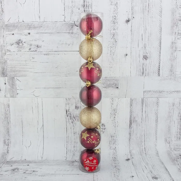 Ёлочные игрушки «Звёздная мелодия», шары новогодние, d=6 см, набор 7 шт., золотисто-бордовый — Характеристики