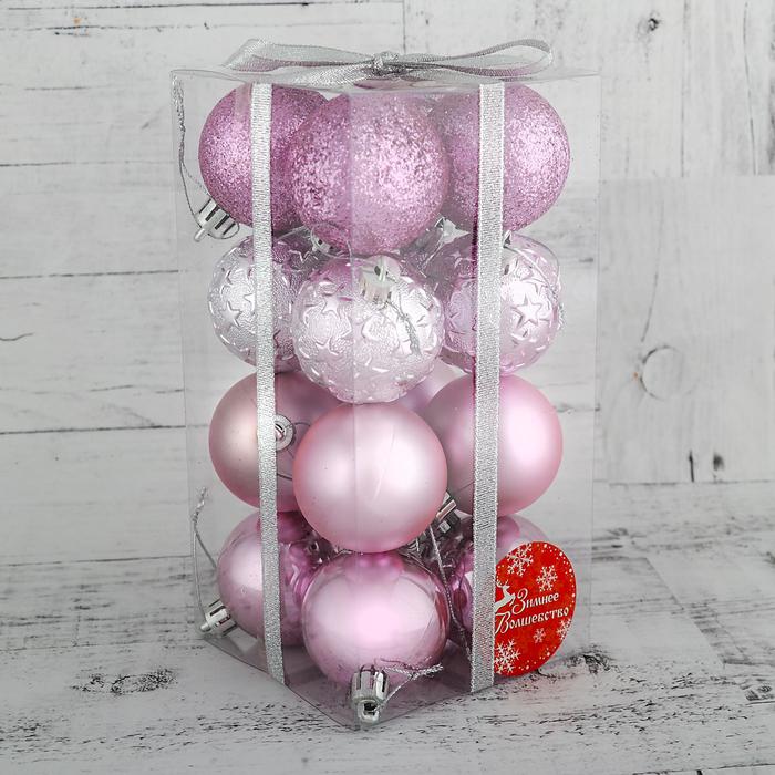 Ёлочные игрушки «Звёздная ночь», шары новогодние, набор 16 шт., d=5 см, розовый — Характеристики