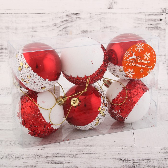 Ёлочные игрушки «Звёздный поясок», шары новогодние, набор 6 шт., d=6 см, красный — Характеристики