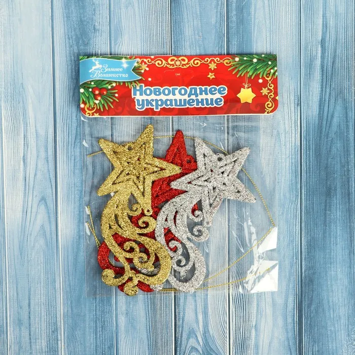 Ёлочные игрушки "Звёздочка с дымкой" (набор 3 шт) 4х10 см, МИКС — Характеристики