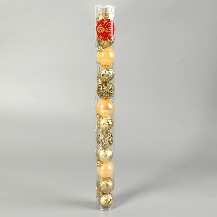 Ёлочные шары 12 шт. «Мелодия», d=4 см, орнамент блеск, золото — Характеристики