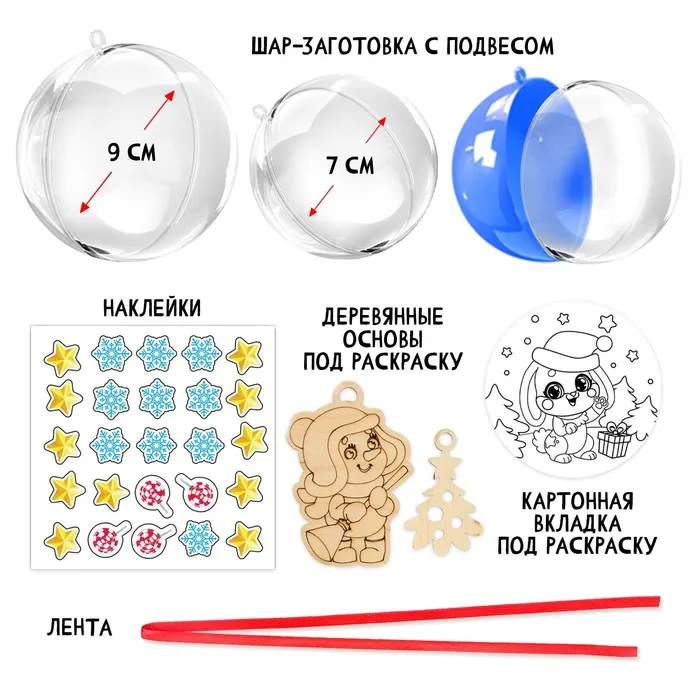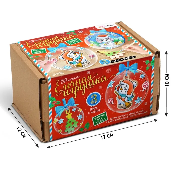 Создай уникальные новогодние игрушки! Набор для творчества: ёлочные шары с фигурками под роспись – это комплект для создания оригинальных украшений своими руками. Внутри прозрачных шаров можно разместить раскрашенные элементы и наклейки, создавая индивидуальный дизайн.