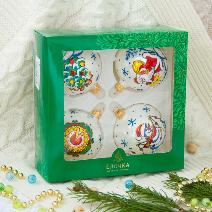 Хрупкий материал и изумительная роспись превращают каждое изделие в произведение искусства, второго такого же не найти. Набор ёлочных украшений станет эксклюзивным подарком для коллекционера или ценителя уникальных новогодних игрушек.