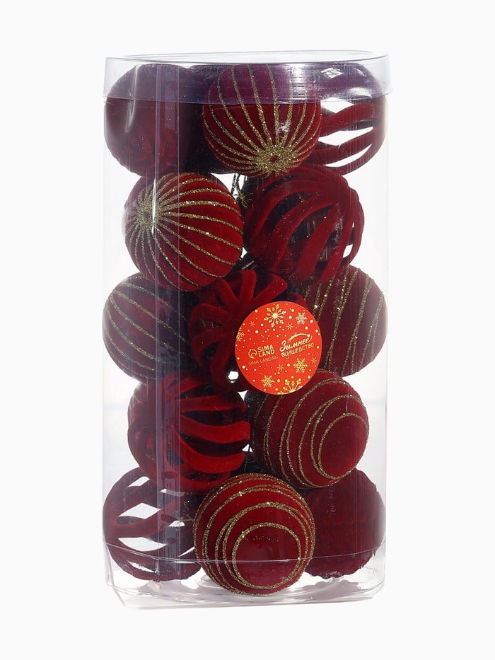 Набор из 20 красных ёлочных шаров диаметром 6 см представляет собой гармоничное сочетание классики и выразительности в праздничном декоре. Эти пластиковые украшения объединяют однотонную поверхность с изящным резным рисунком, создавая эффект бархатистой текстуры, которая привлекает внимание и добавляет глубину композиции. Благодаря универсальному размеру и насыщенному цвету, набор подходит для оформления как больших, так и компактных ёлок, внося в интерьер атмосферу тепла и традиционного новогоднего настроения.