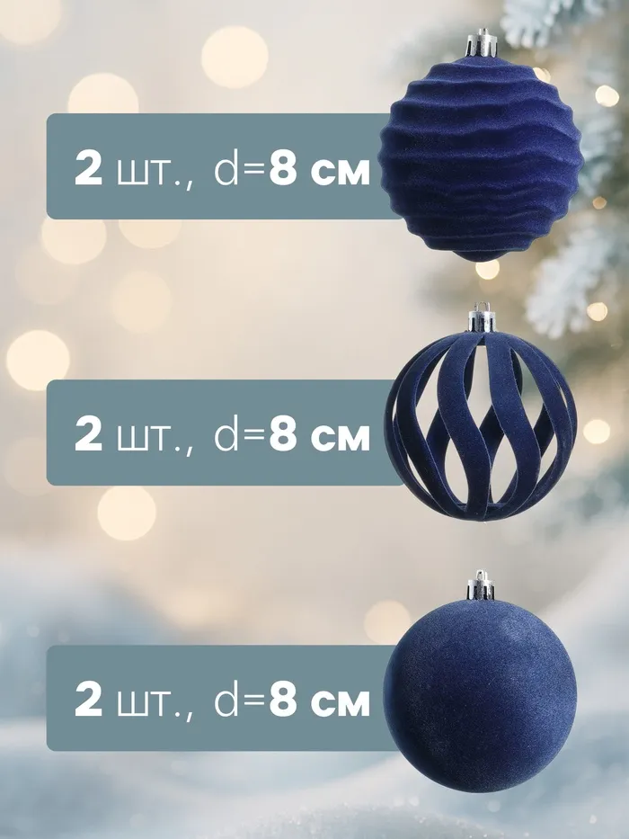 Синие ёлочные шары из этого набора помогают сформировать в доме атмосферу спокойствия и умиротворения, напоминая о морозных зимних вечерах и звёздном небе. Их прохладный оттенок в сочетании с фактурой придаёт декору глубину и выразительность, не перегружая общий образ. Такой выбор украшений способствует созданию гармоничного пространства, где каждый элемент дополняет друг друга, создавая цельную праздничную композицию. Они станут частью традиций, которые объединяют семью и друзей в ожидании волшебства новогодней ночи, помогая сделать праздник особенным и запоминающимся.