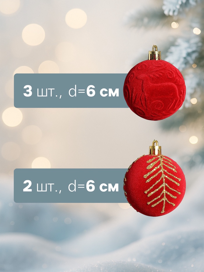 Ёлочные шары набор 9 шт., d=6 см, «Бархат. Карнавал» красный — Характеристики