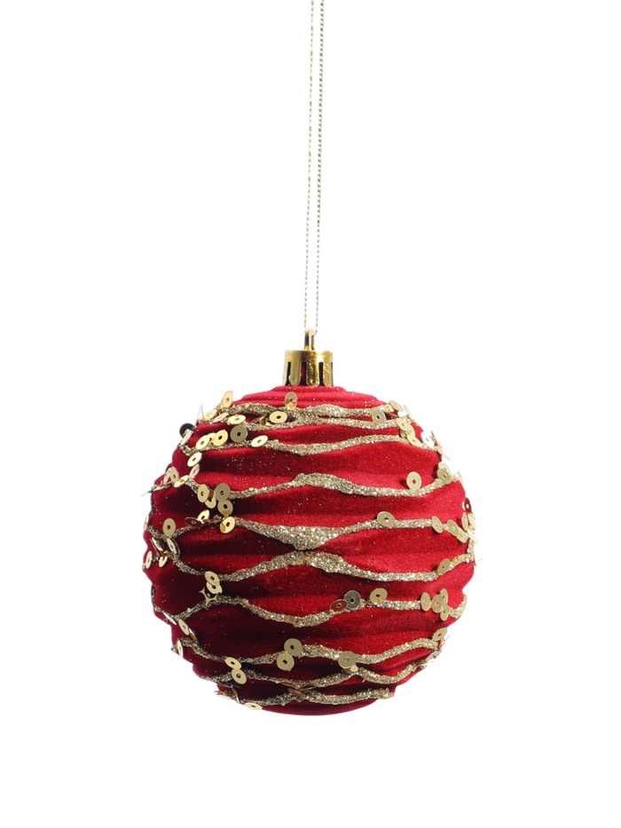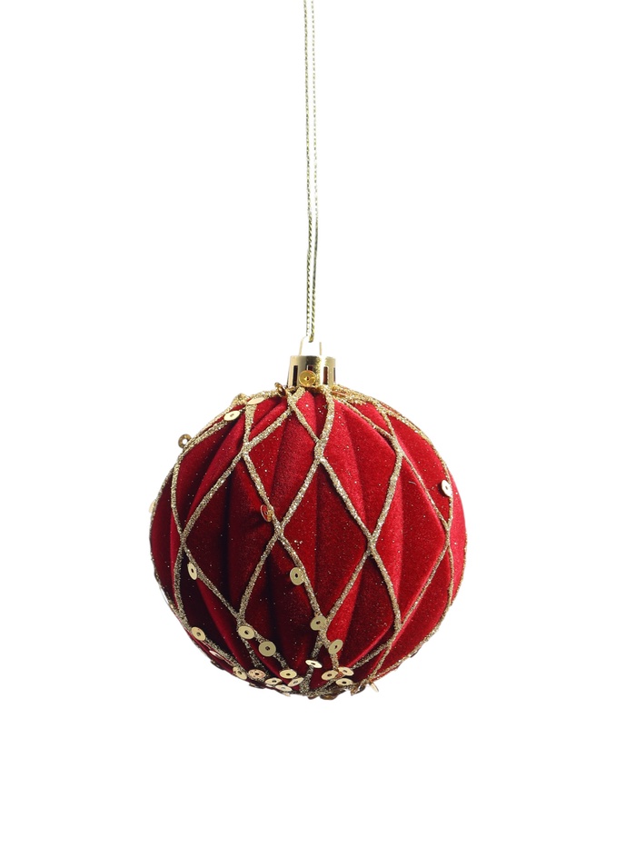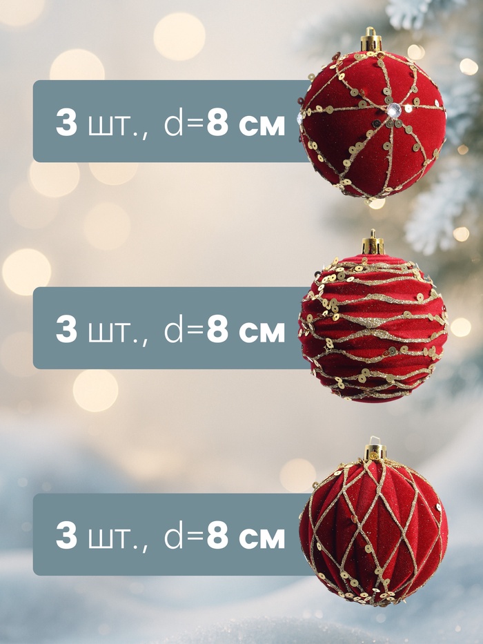 Набор красных ёлочных шаров с бархатной текстурой и геометрическим дизайном станет ярким акцентом в вашем новогоднем декоре. Каждый шар диаметром 8 см добавляет изысканности и стиля, создавая атмосферу праздника и уюта.