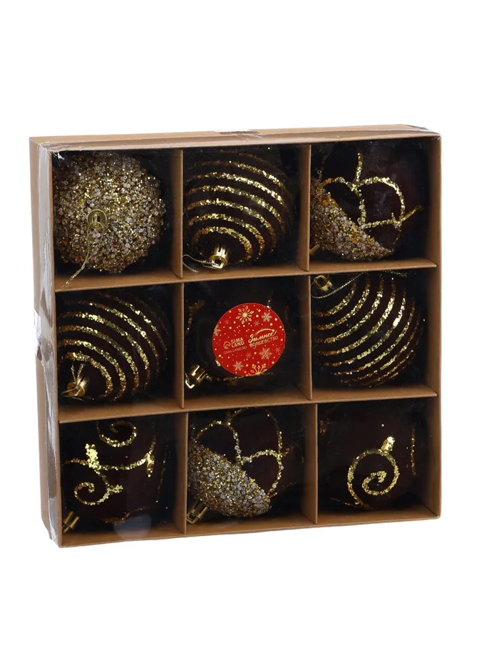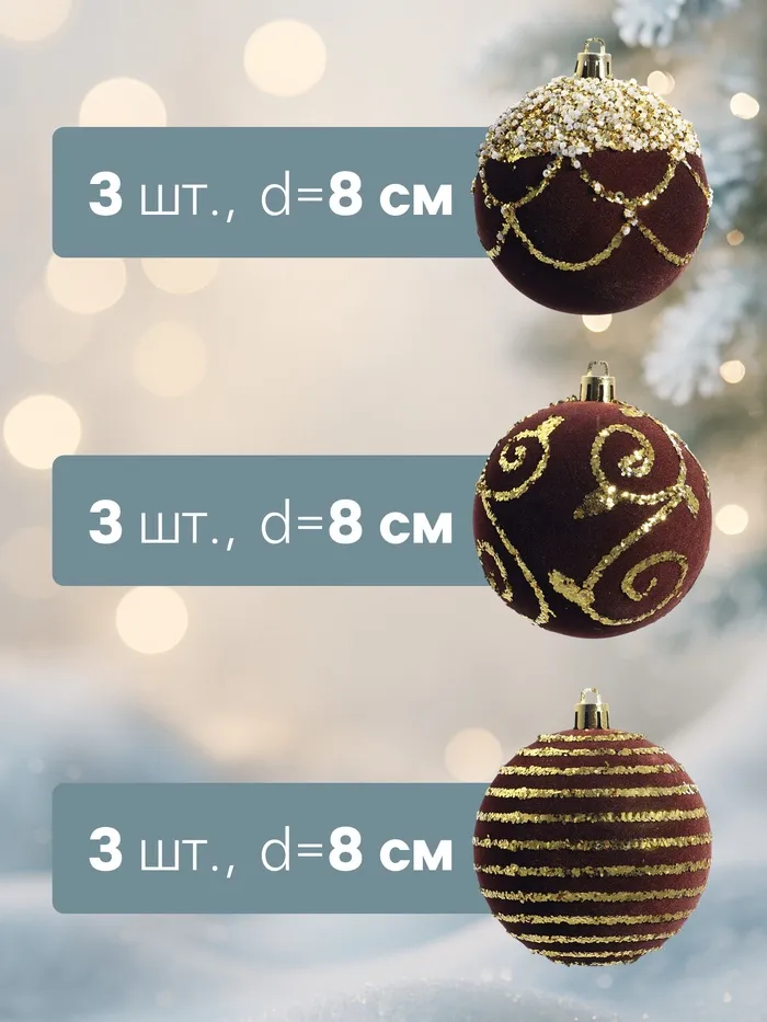 Ёлочные шары новогодние «Бархат. Фестиваль», набор 9 шт., d=8 см, завитки, коричневый — Характеристики