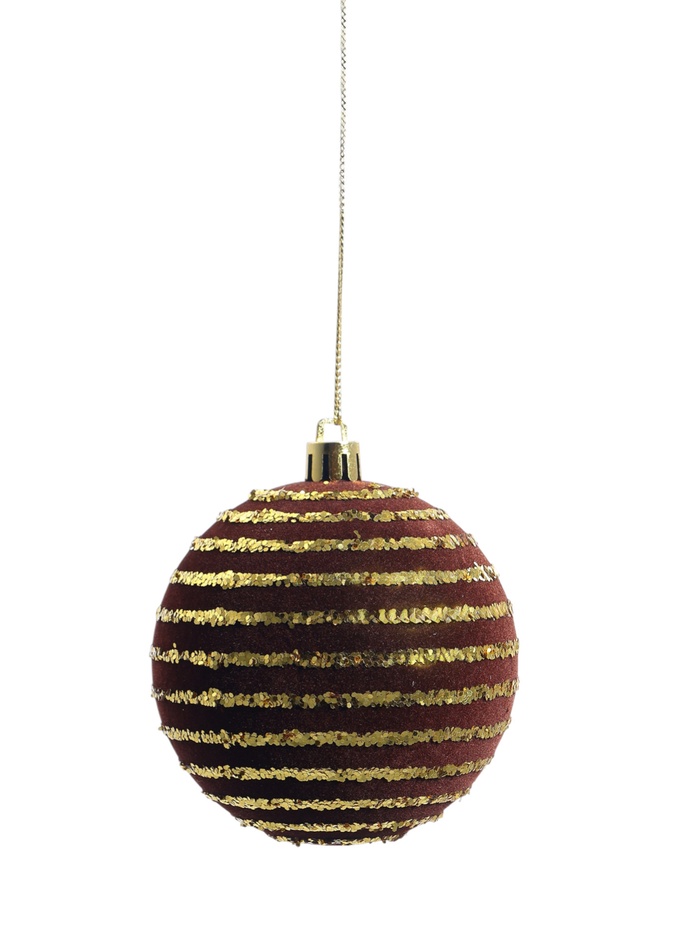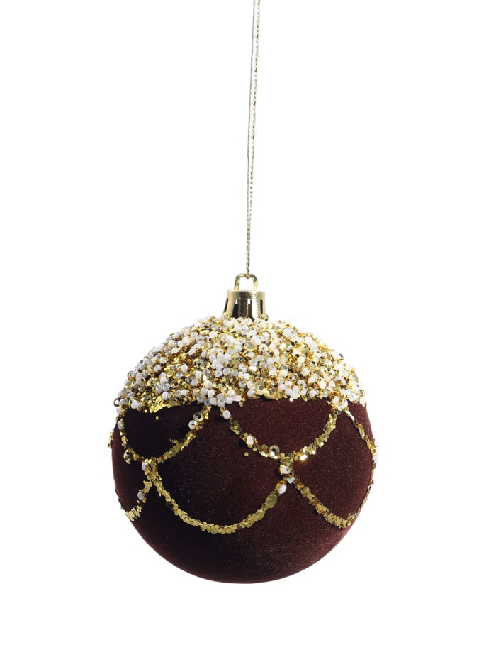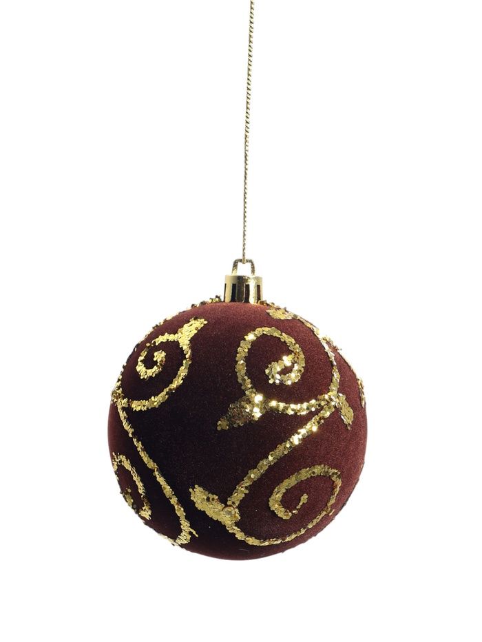 Набор коричневых ёлочных шаров с бархатистой текстурой и изящным узором завитков добавит тёплых оттенков в праздничное оформление. Диаметр 8 см делает украшения заметными, но не громоздкими, что позволяет гармонично вписать их в любой новогодний декор.