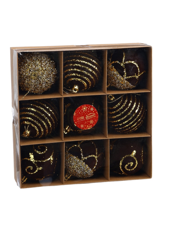 Ёлочные шары новогодние «Бархат. Фестиваль», набор 9 шт., d=8 см, завитки, коричневый