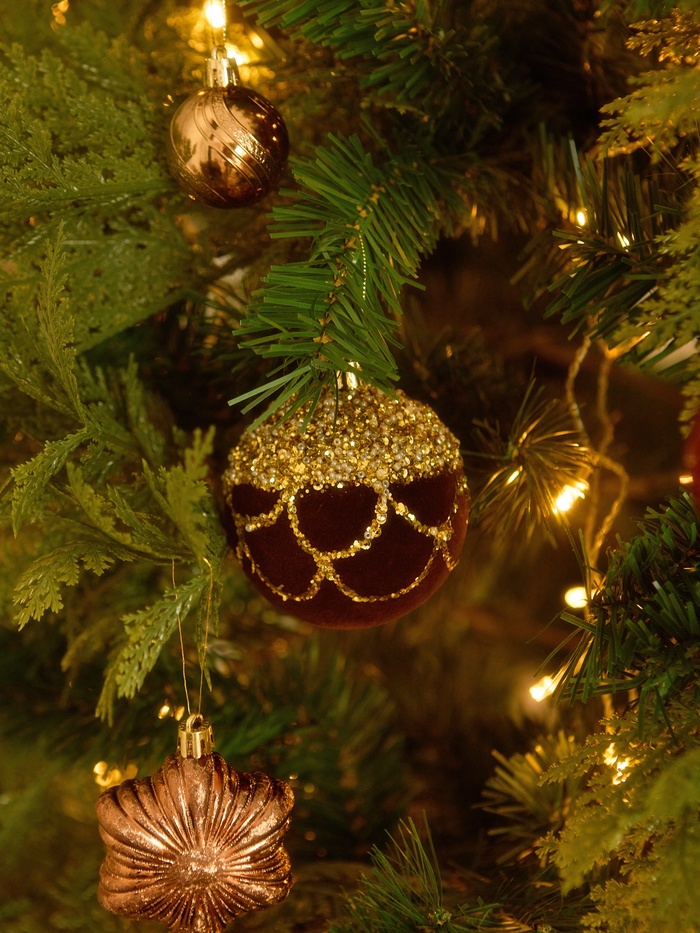 Эти шары помогают подчеркнуть естественную теплоту интерьера и создать атмосферу спокойствия и уюта. Их дизайн гармонично вписывается в разнообразные стили новогоднего декора, делая оформление ёлки завершённым и выразительным.