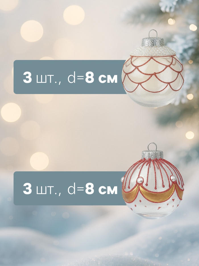 Эти шары оживляют ёлку, отражая свет гирлянд и добавляя яркие акценты. Набор помогает оформить новогодний интерьер с акцентом на традиционные цвета и современный дизайн.