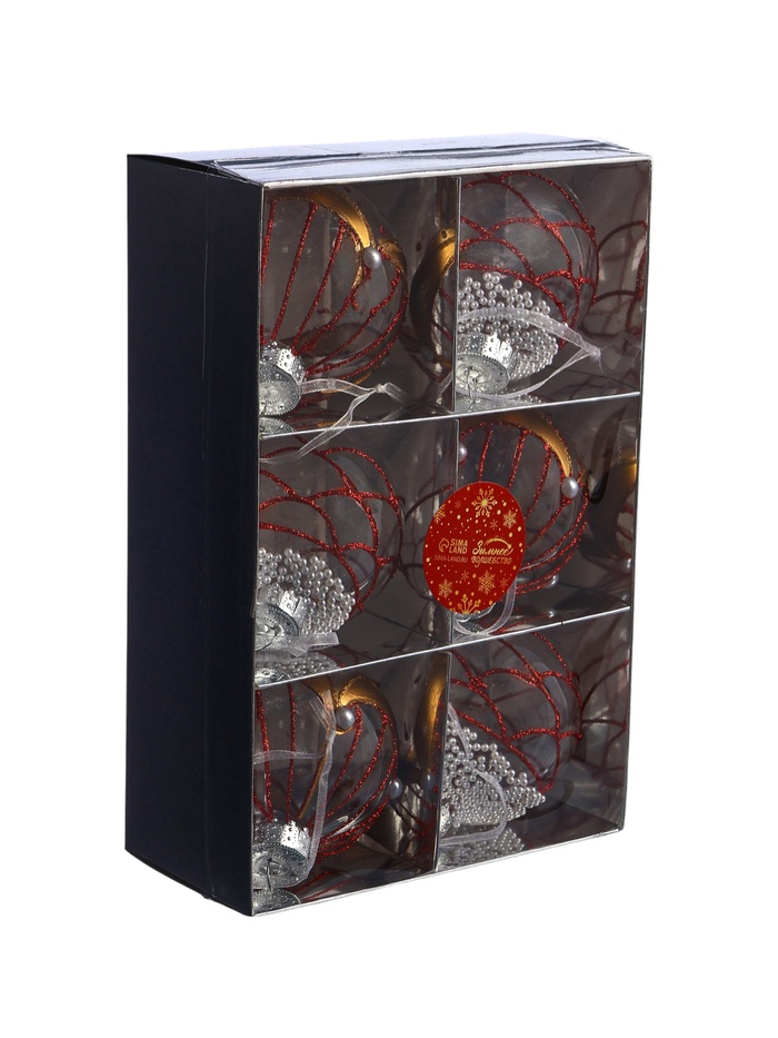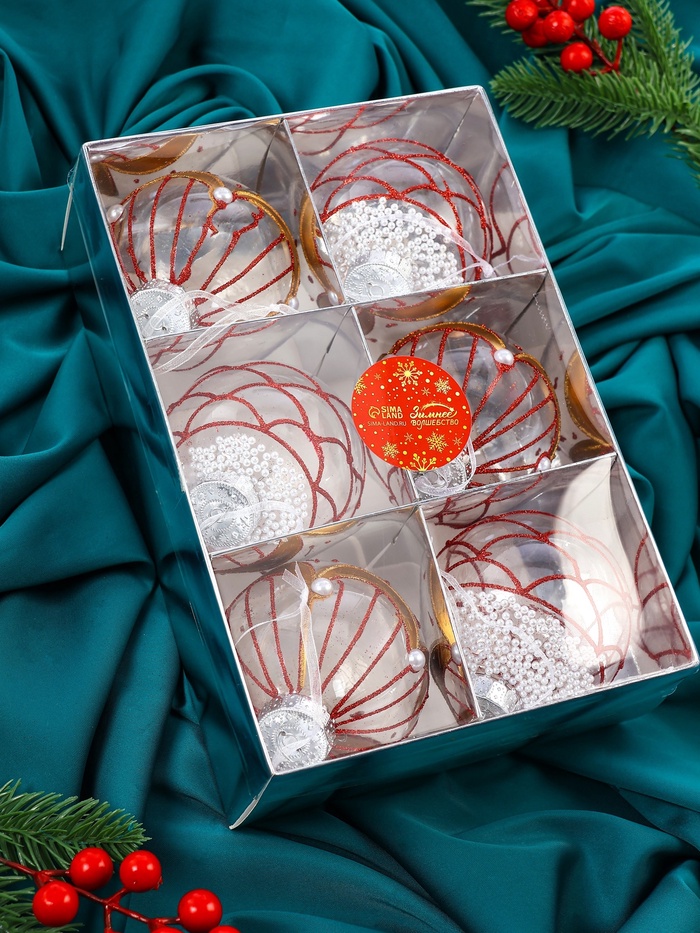 Ёлочные шары новогодние «Лирой», набор 6 шт., d=8 см, красно-белый — Характеристики