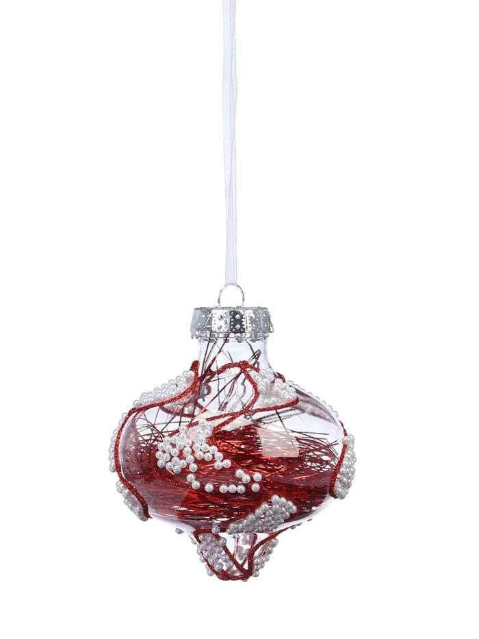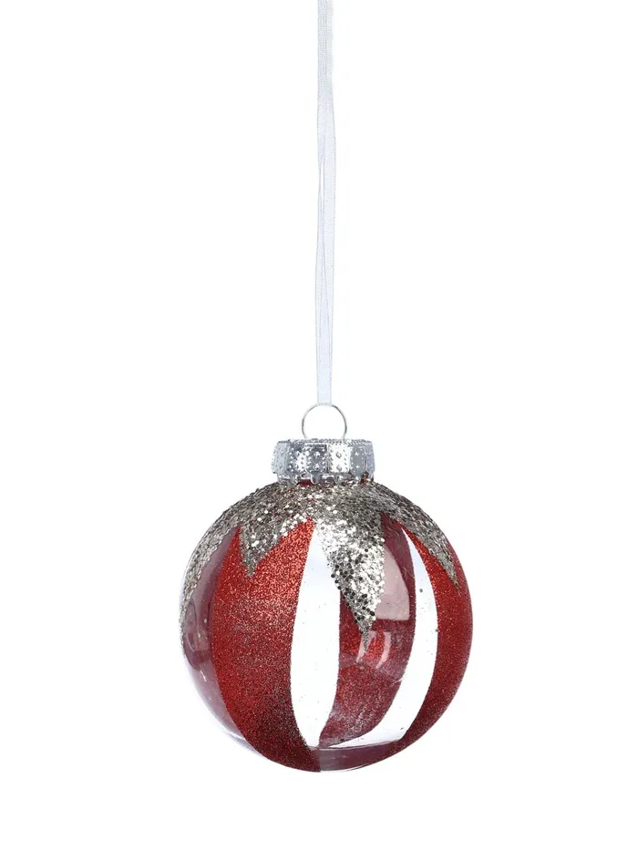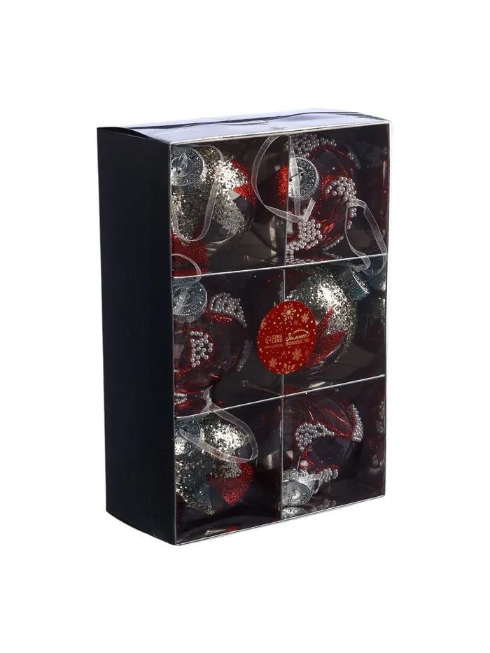 Набор из шести красно-белых ёлочных шаров диаметром 8 см станет стильным дополнением праздничного украшения. Прозрачная пластиковая основа с рисунком придаёт объём и игру света, создавая лёгкую и выразительную атмосферу на ёлке.