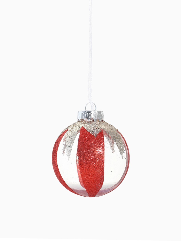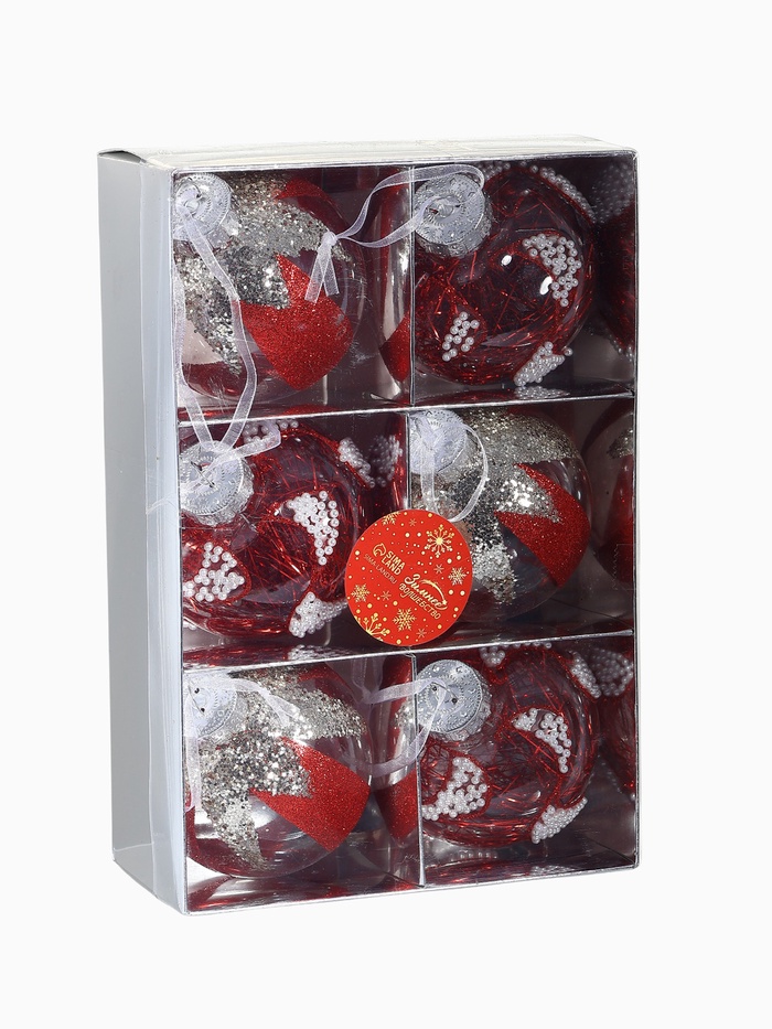 Набор из шести красно-белых ёлочных шаров диаметром 8 см станет стильным дополнением праздничного украшения. Прозрачная пластиковая основа с рисунком придаёт объём и игру света, создавая лёгкую и выразительную атмосферу на ёлке.