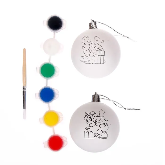 Ёлочные шары под раскраску на новый год «Чудеса под ёлочкой», краски, 2 шт, набор для творчества — Характеристики