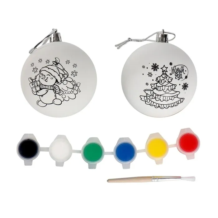 Ёлочные шары под раскраску на новый год «Исполнения желаний», d=7 см, 2 шт, краски, набор для творчества — Характеристики