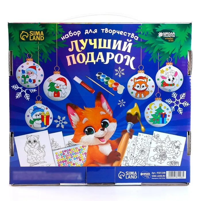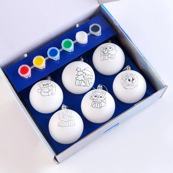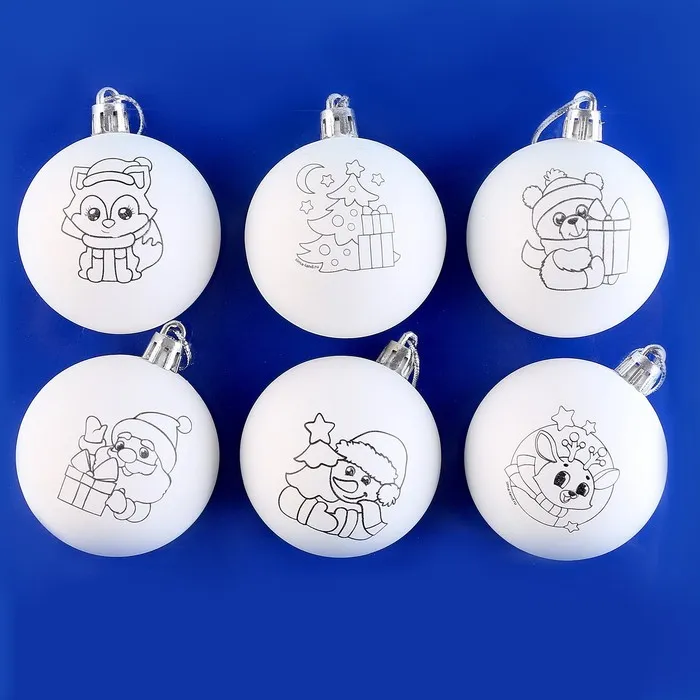 Ёлочные шары под раскраску на новый год «Лучший подарок», 6 шт, набор для творчества — Характеристики