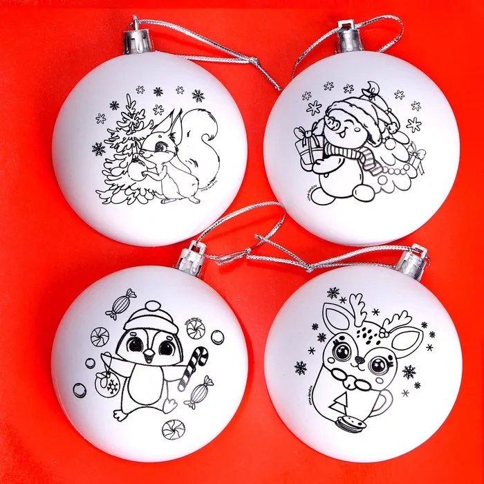 Ёлочные шары под раскраску на новый год «Подарок для тебя», 4 шт, d = 7 см, набор для творчества — Характеристики