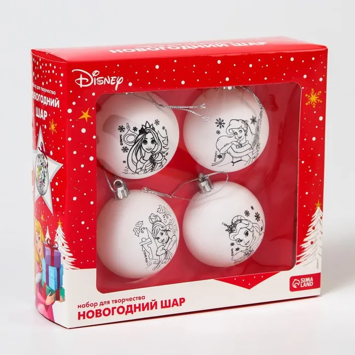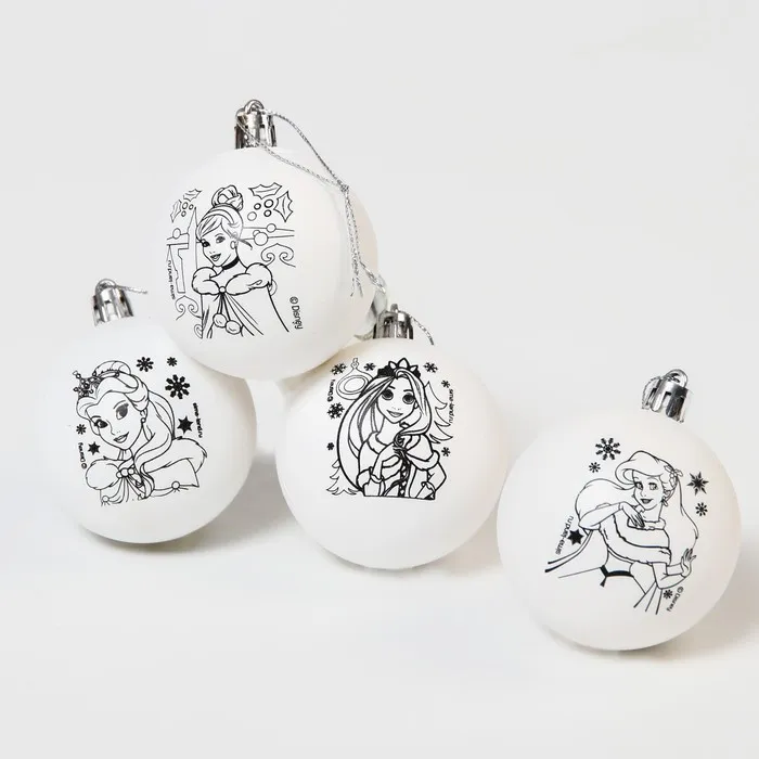 Ёлочные шары под раскраску на новый год «Принцессы», 4 шт, d = 5,5 см, набор для творчества — Характеристики