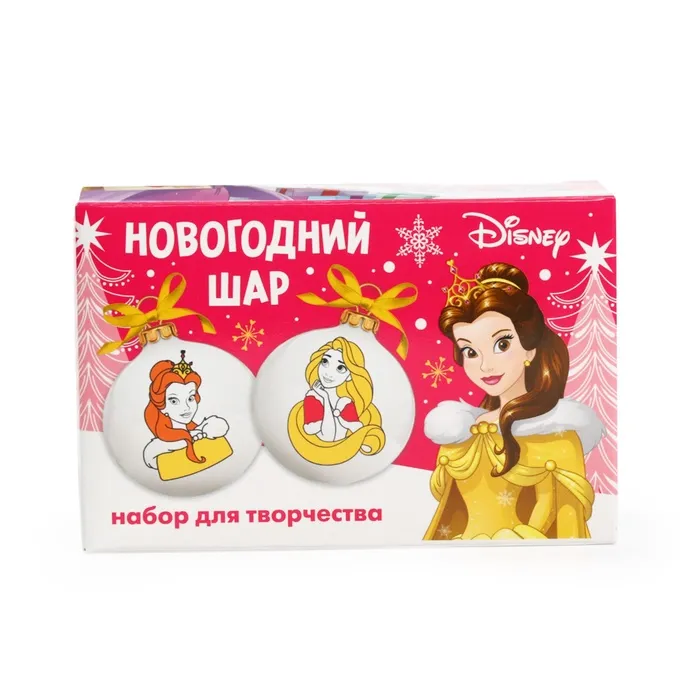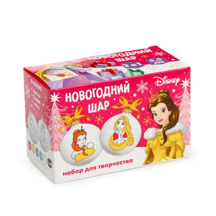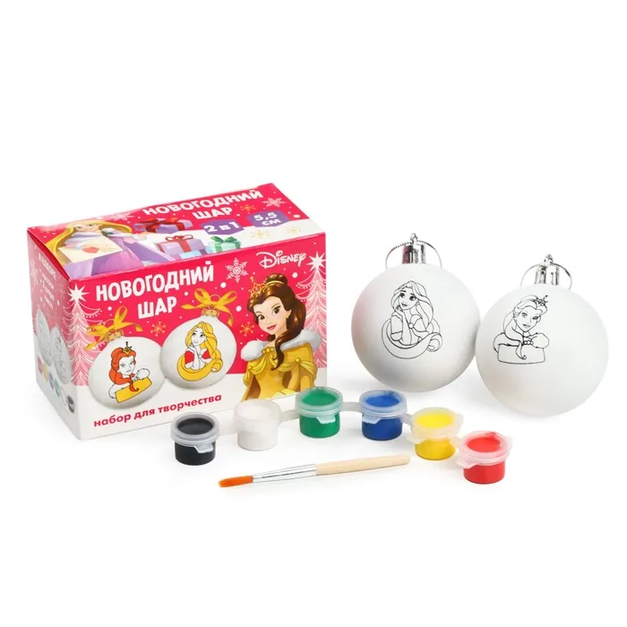 Ёлочные шары под раскраску на новый год «Принцессы», d=5.5 см, 2 шт, краски, набор для творчества — Характеристики