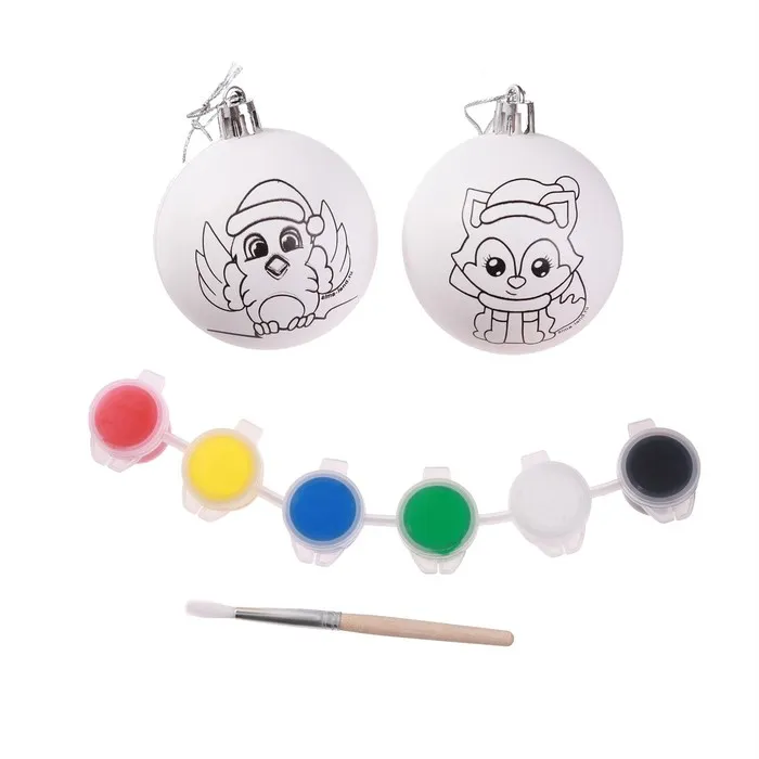 Ёлочные шары под раскраску на новый год «Сказка»,краски, 2 шт, набор для творчества — Характеристики