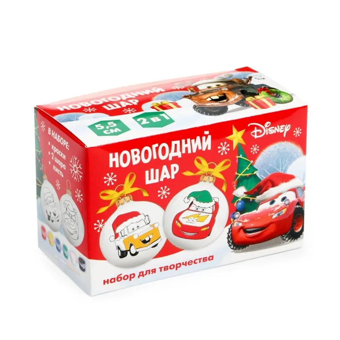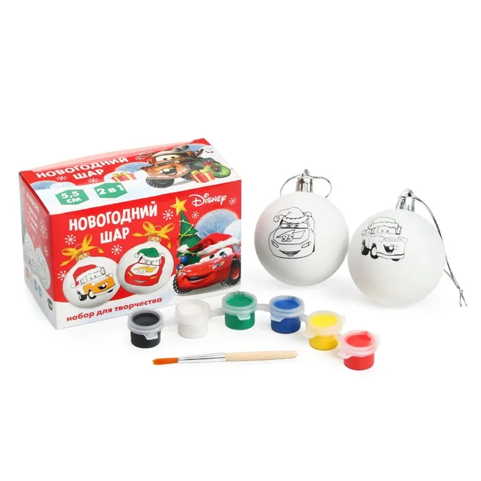 Ёлочные шары под раскраску на новый год «Тачки», d=5.5 см, 2 шт, краски, набор для творчества — Характеристики
