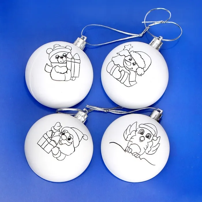 Ёлочные шары под раскраску на новый год «Весёлый Новый год», 4 шт, d = 5.5 см, набор для творчества — Характеристики