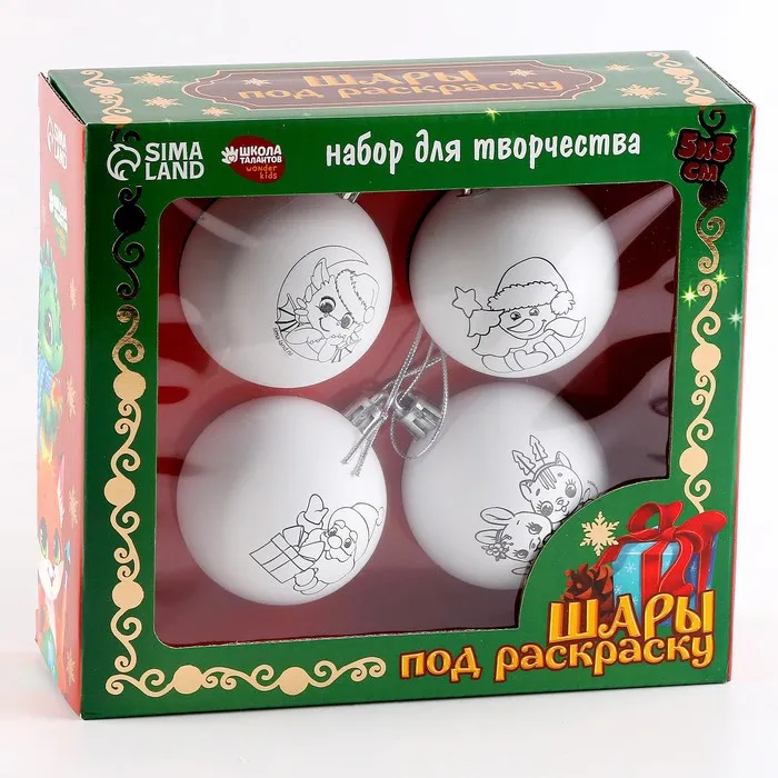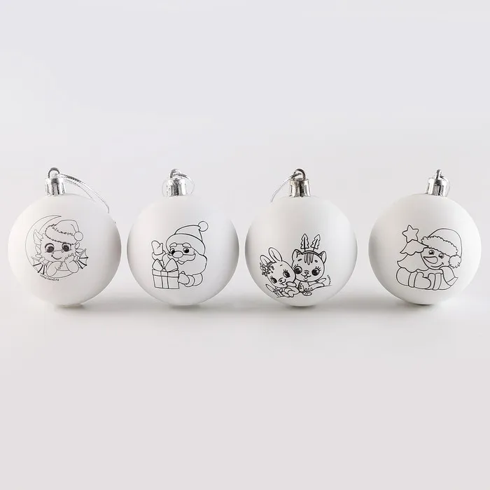 Ёлочные шары под раскраску на новый год «Волшебный праздник», 4 шт, d = 5,5см, набор для творчества — Характеристики
