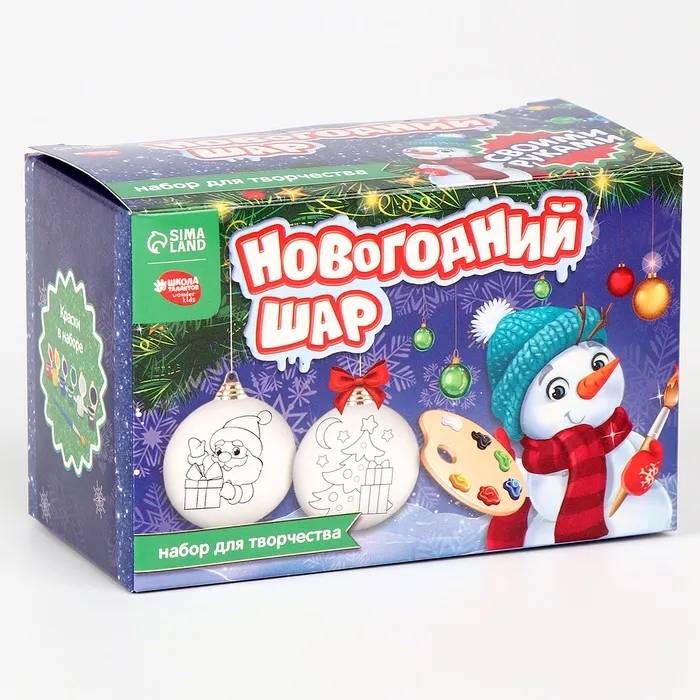 Ёлочные шары под раскраску на новый год «Зимний лес», 2 шт, набор для творчества — Характеристики