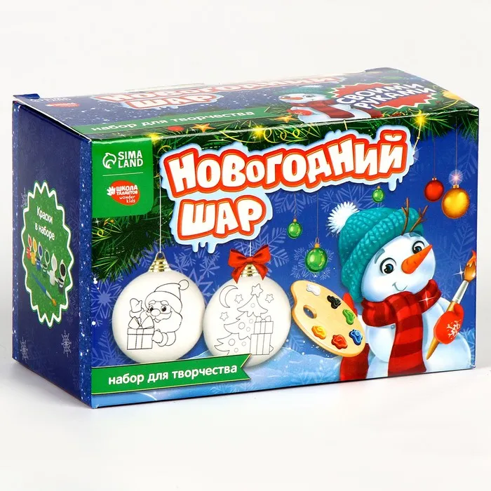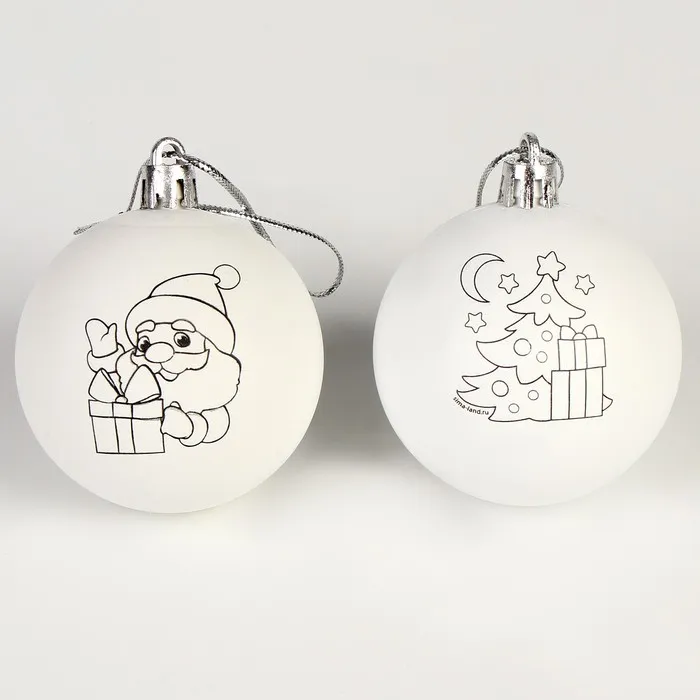 В наборе шары с нанесённым рисунком. Вам остаётся лишь проявить фантазию и раскрасить их на свой вкус. Набор шаров также станет прекрасным подарком друзьям и близким.