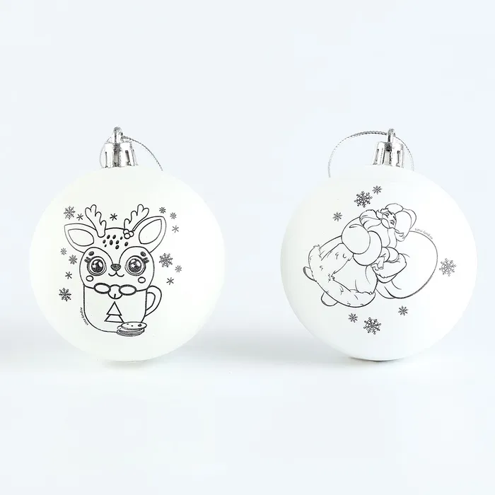 Ёлочные шары под раскраску «Новый год! Праздник в каждый дом», 2 шт, d = 7 см, набор для творчества — Характеристики