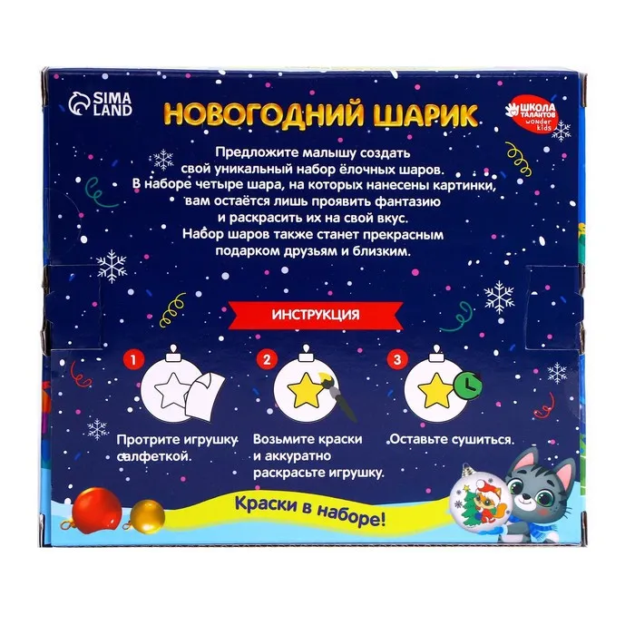 Ёлочные шары под раскраску «Счастья в Новом году», 4 шт, набор для творчества — Характеристики